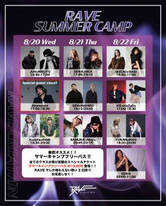 8/20.21.22にて開催されるRAVEサマーキャンプの情報公開!!!!