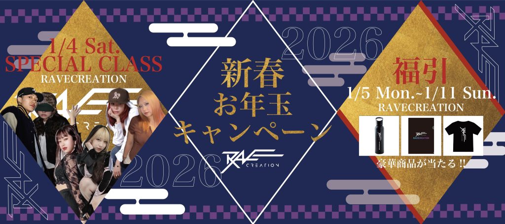 2026年 初の通常レッスンは 1/5(月)‼️ ⸻ 今年もやります!毎年大好評企画 ✅RAVECREATION 福引大会 ✅ 今年の当たりは豪華景品が目白押し! 【期間:1/5(月)〜1/11(日)】 1週間限定開催! 会員限定 ※非会員様もご入会頂いたその日に参加可能‼️ ⸻ 🧧 福引大会ルール 🧧 ・レッスンを受講した日は 1日1回くじ引きOK ・帰宅前に 受付でくじ引き(引き忘れ注意⚠️) ・景品は 無くなり次第終了 RAVECREATIONで運試し!? ぜひお見逃しなく✨ ______________________________ 🎍お正月スペシャルレッスン開催🎍 年始一発目1/4 […]